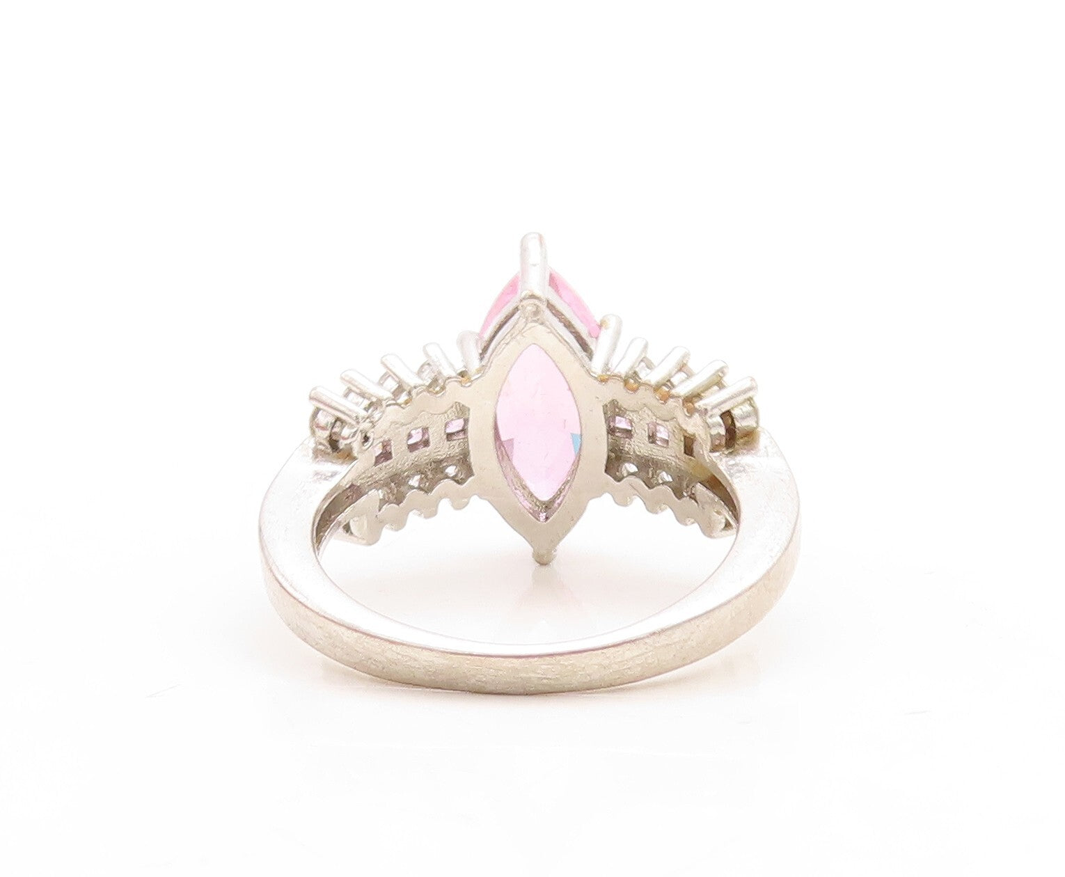 925 Sterling Silver Vintage Ring Marquise Cut Pink & White CZ Sz 8 RG31494