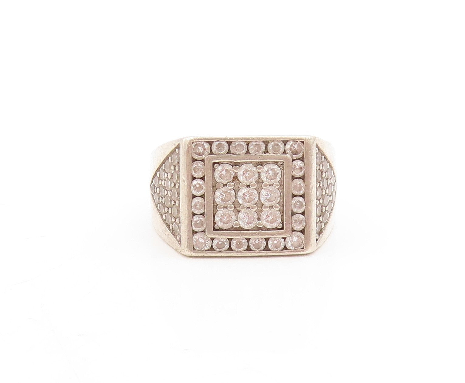 925 Sterling Silver Vintage Ring Brutalist Square Cutout CZ Inlay Sz 10 RG31330