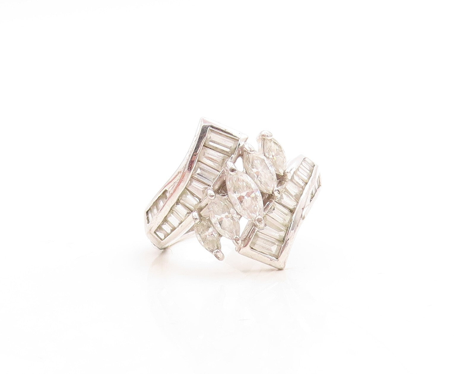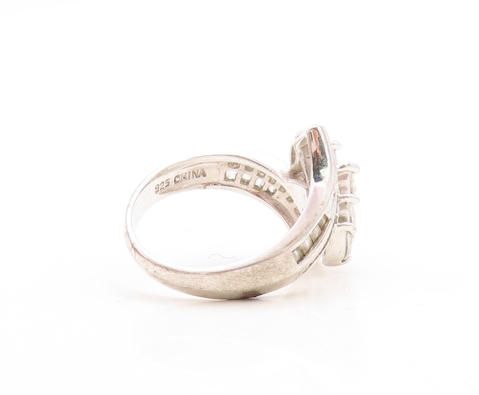 925 Sterling Silver Vintage Ring Modernist CZ Inlay Floral Design Sz 6 RG31882