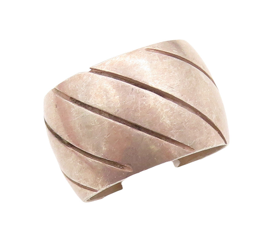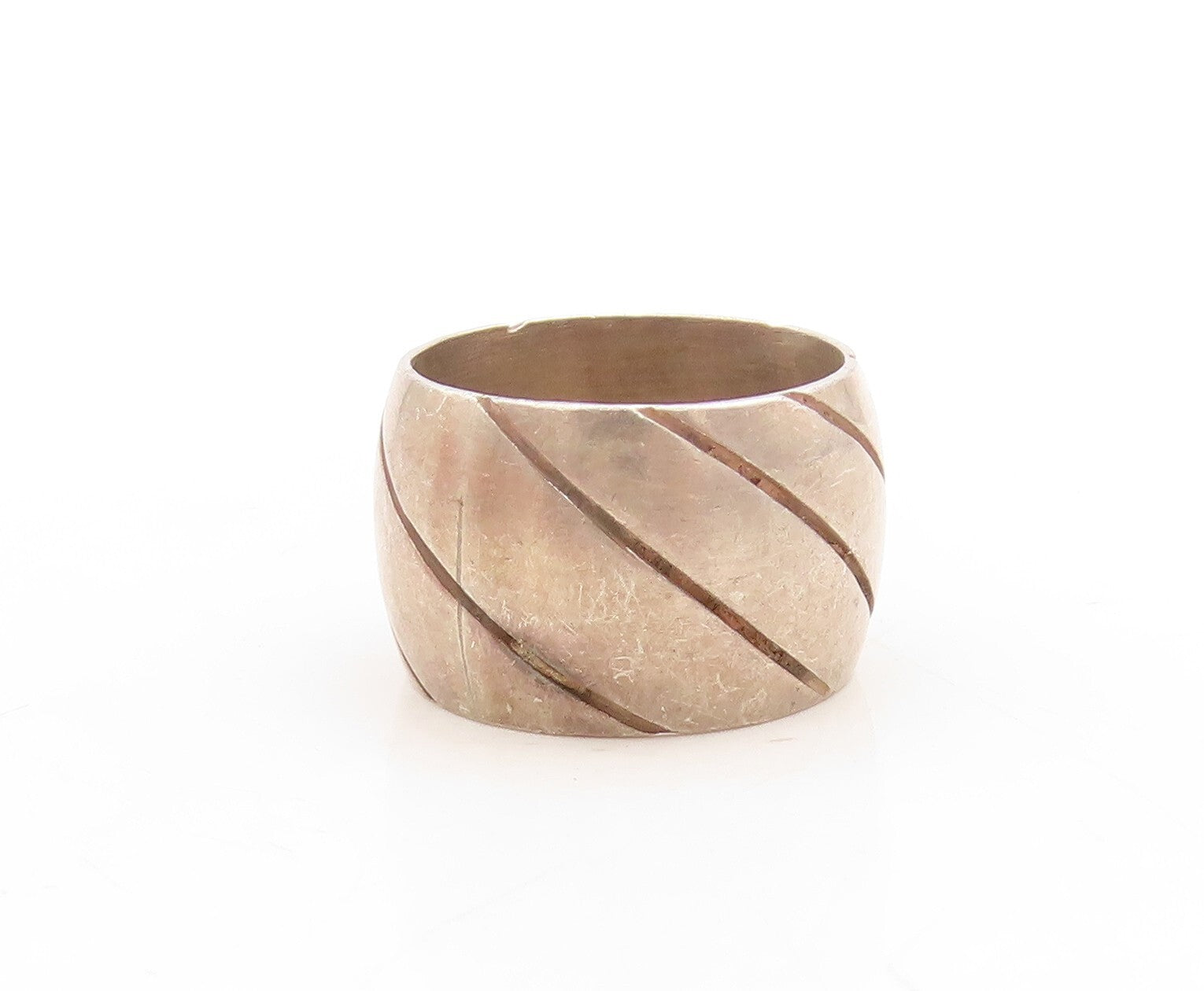925 Sterling Silver Vintage Ring MEXICO Dark Tone Broad Grooved Sz 6.5 RG31554