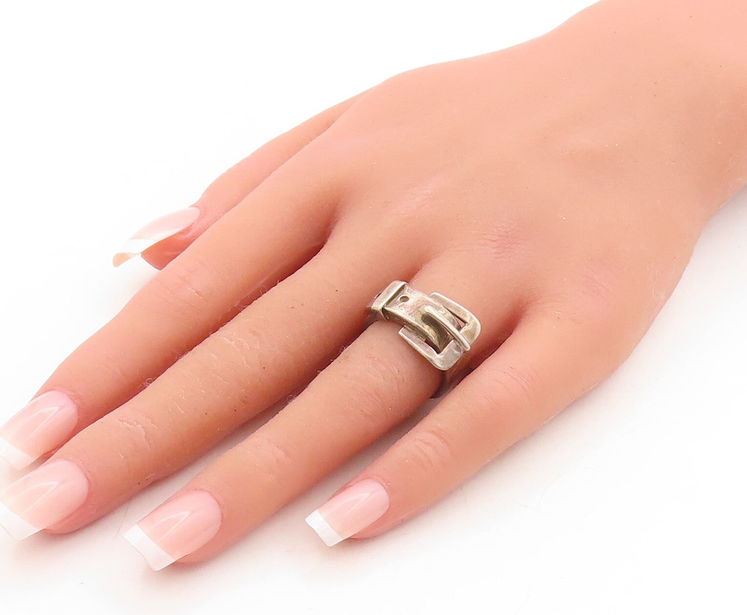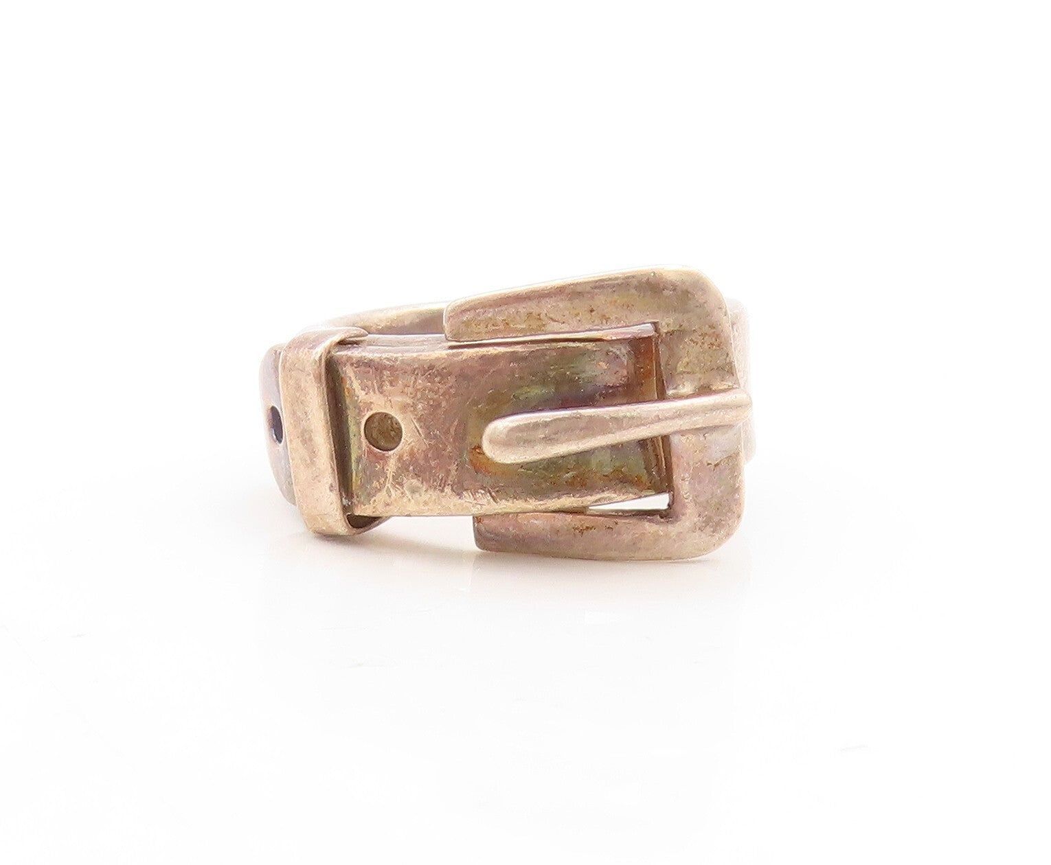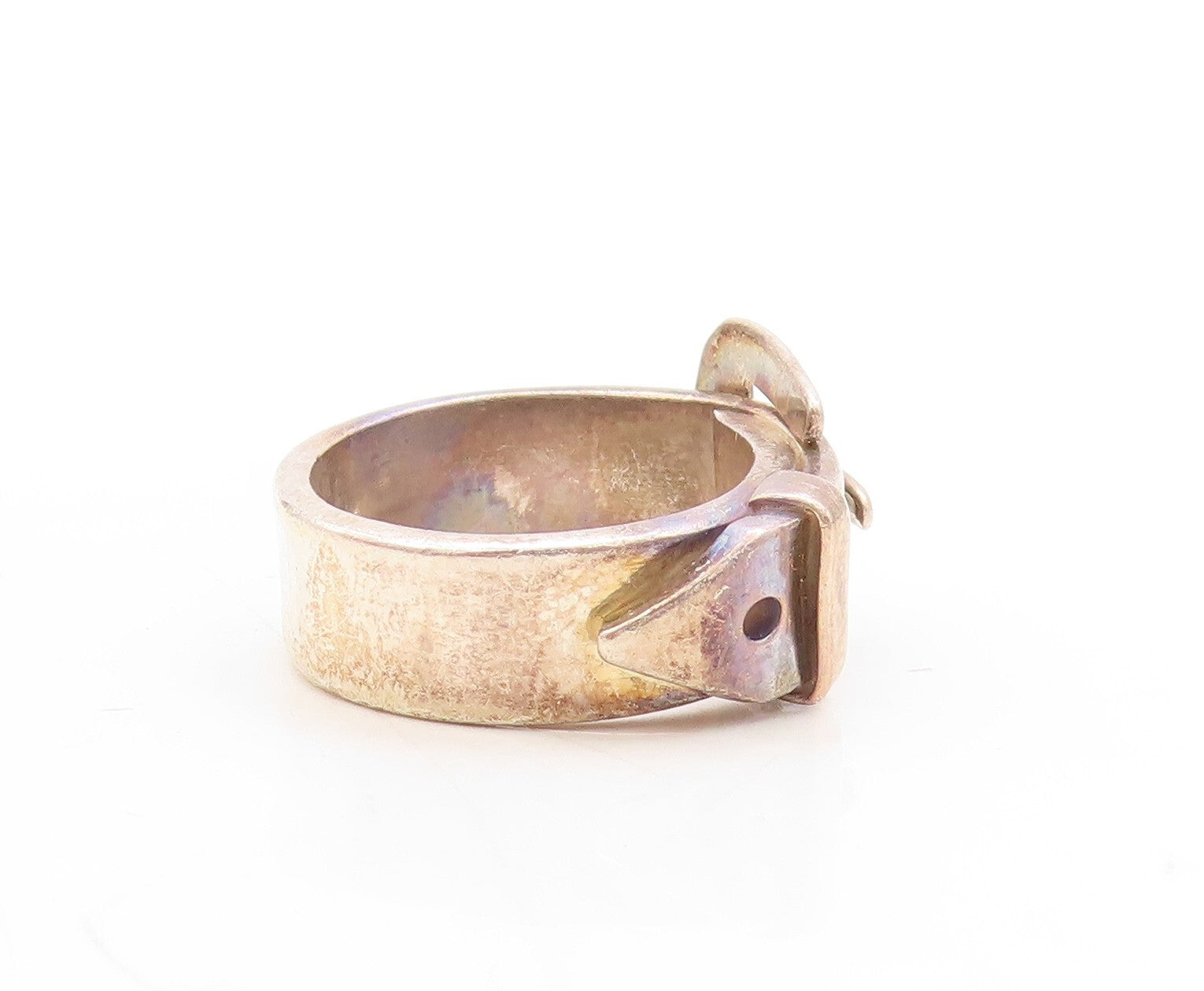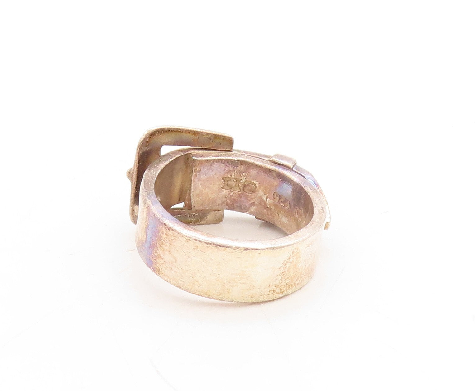 925 Sterling Silver Vintage Ring MEXICO Dark Tone Cutout Belt Sz 7 RG31555