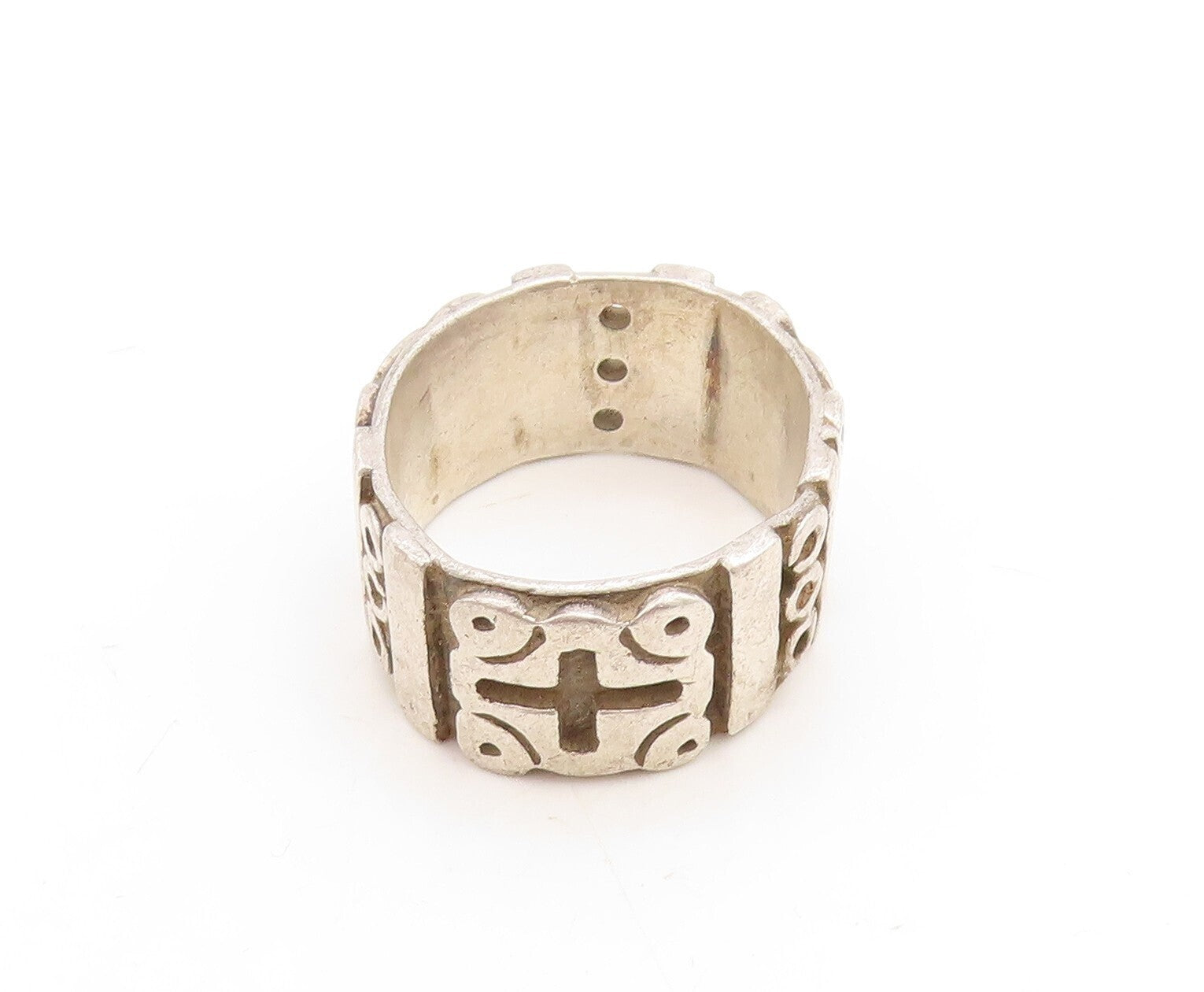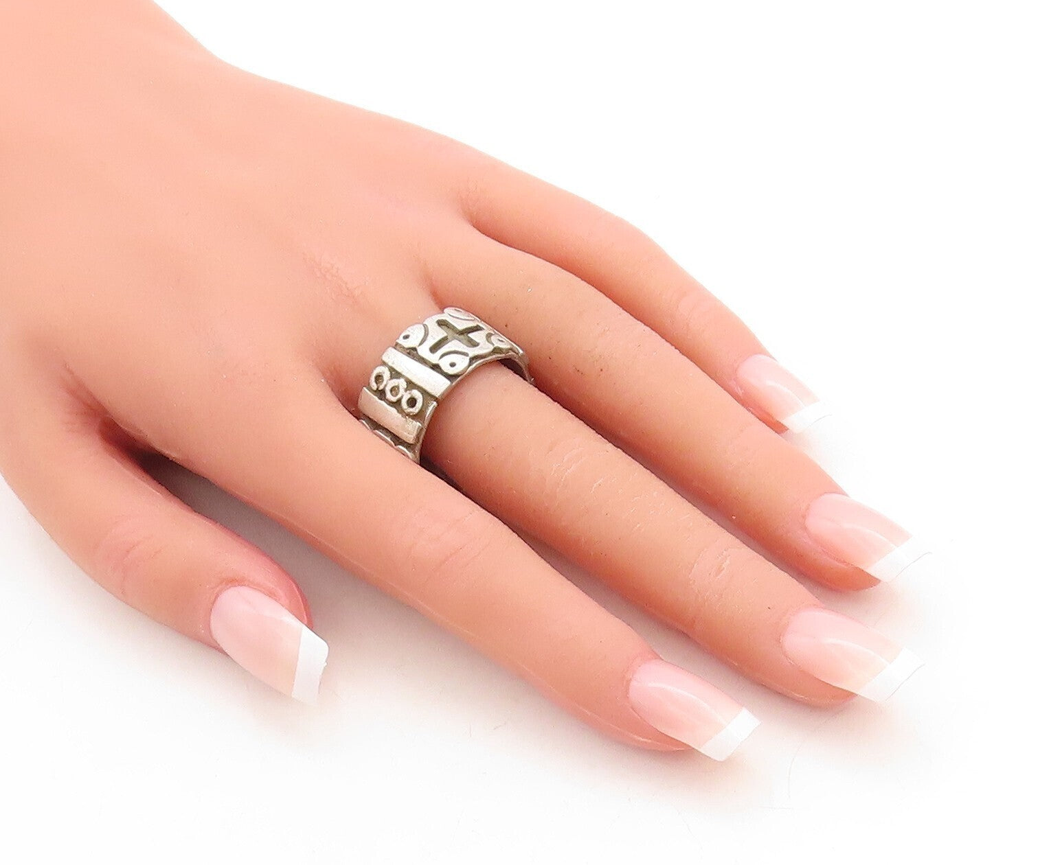 925 Sterling Silver Vintage Ring MEXICO Solid '+' & 'O' Carved Sz 11 RG31161