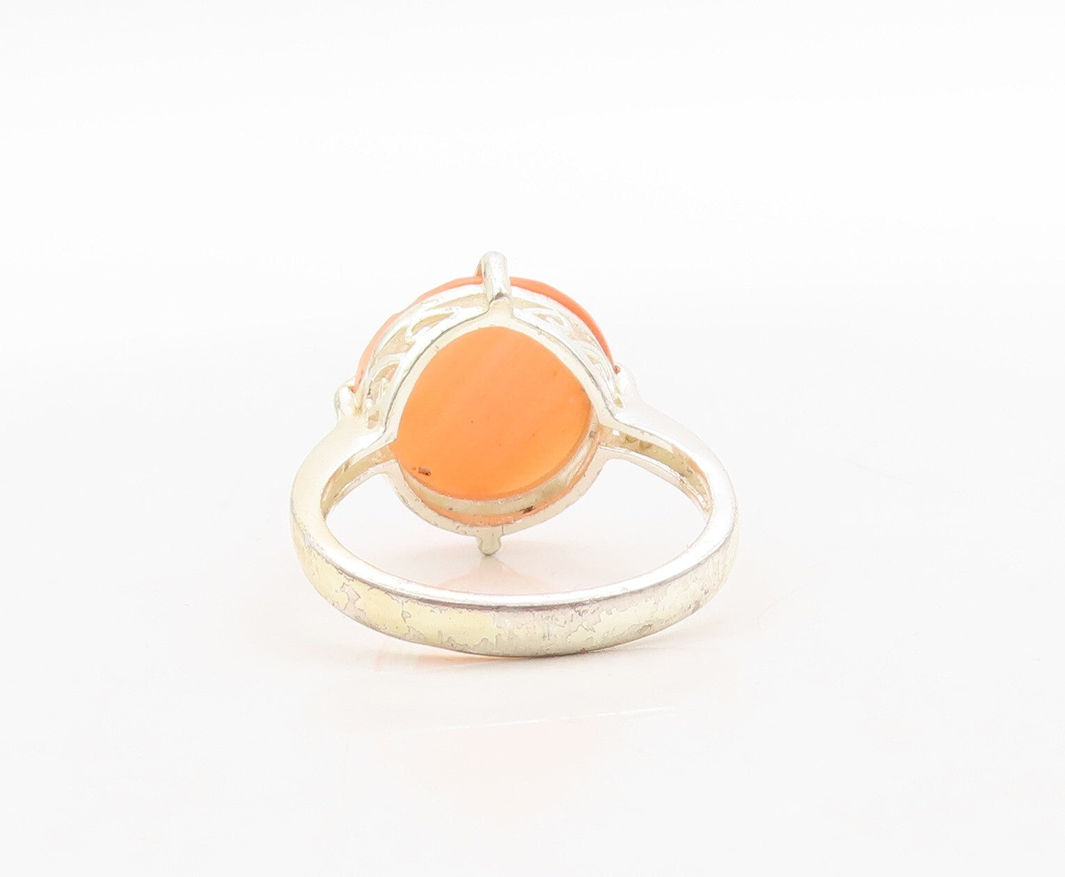 925 Sterling Silver Vintage Ring Round Cut Orange Cat's Eye Sz 8 RG31325