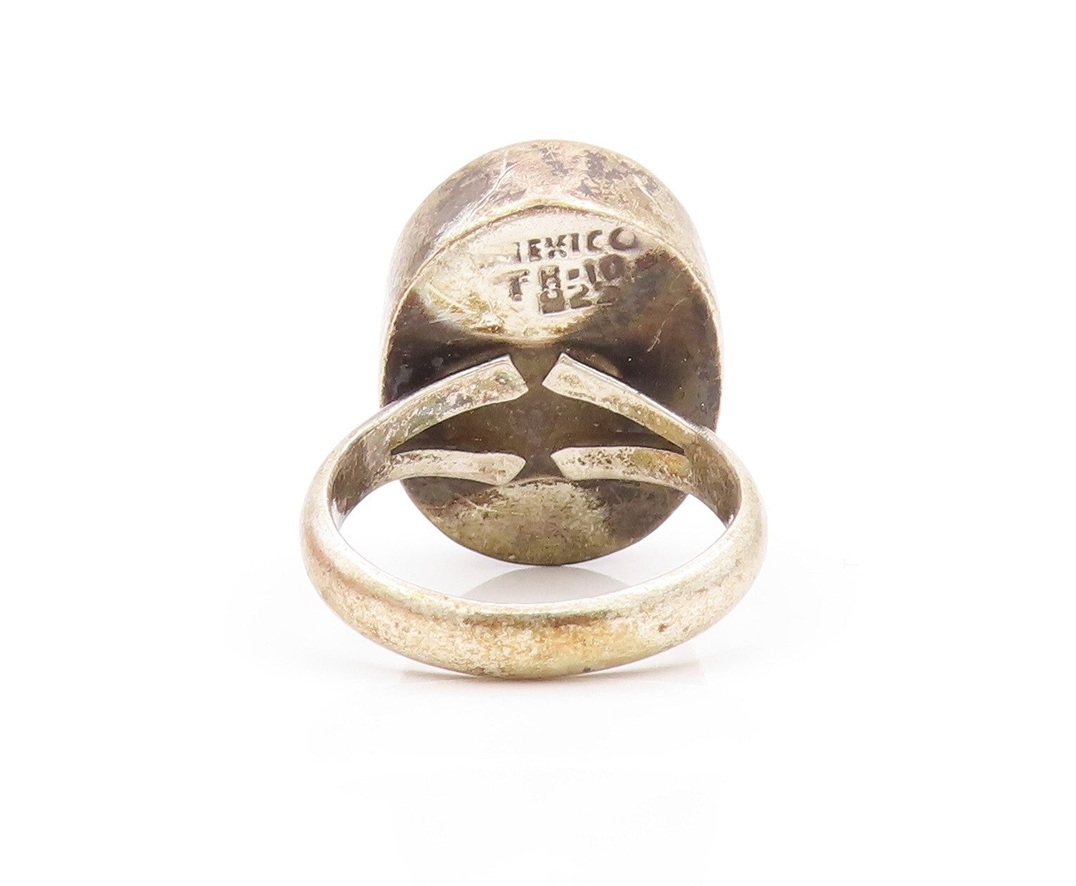 925 Sterling Silver Vintage Ring TAXCO Dark tone Cabochon Amber Sz 9 RG31865